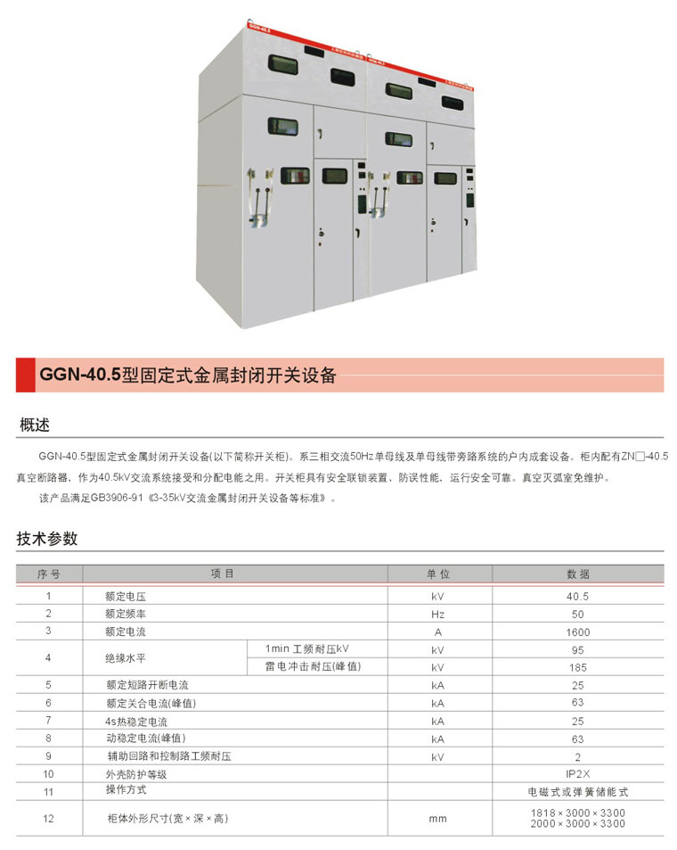 GGN-40.5型固定式金属封闭开关设备